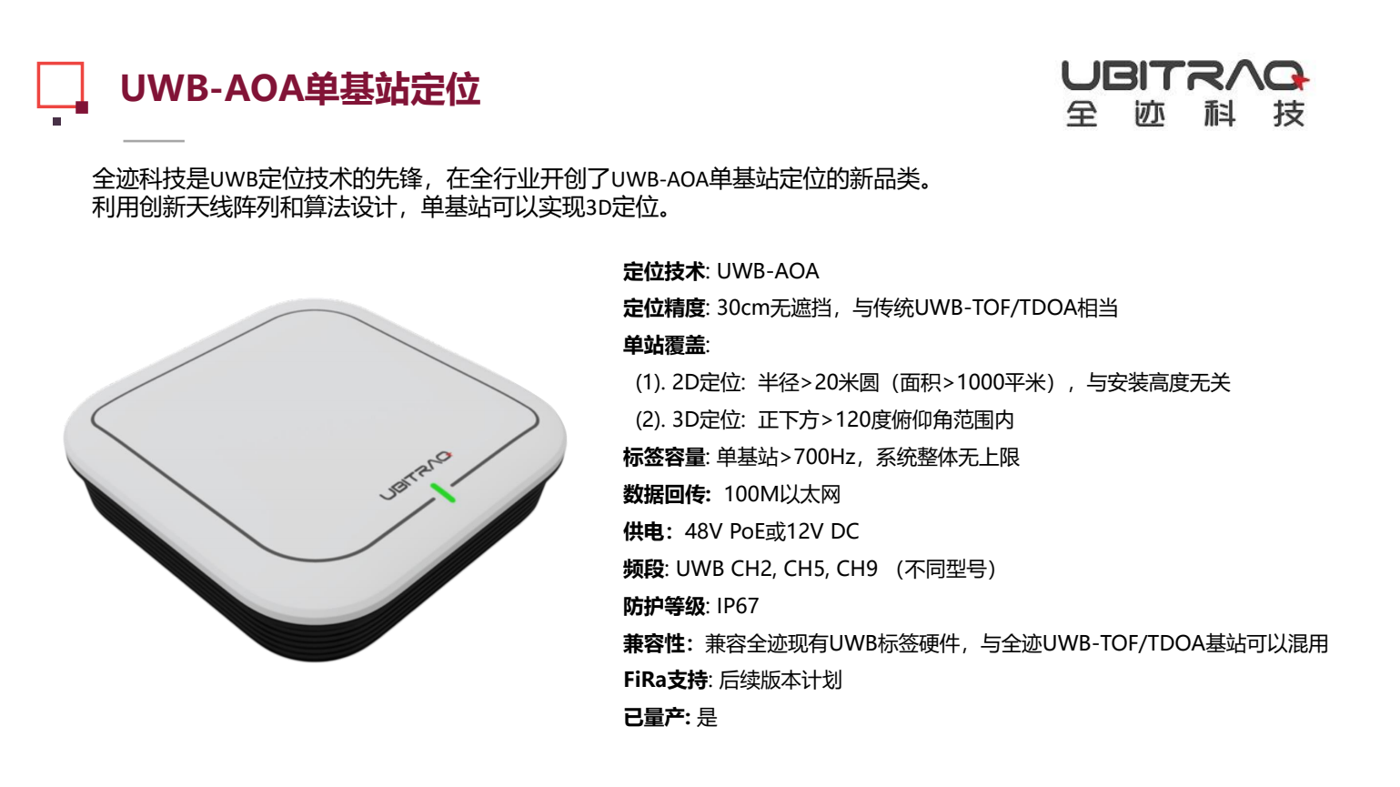 全跡科技發(fā)布新一代UWB-AOA單基站定位產品