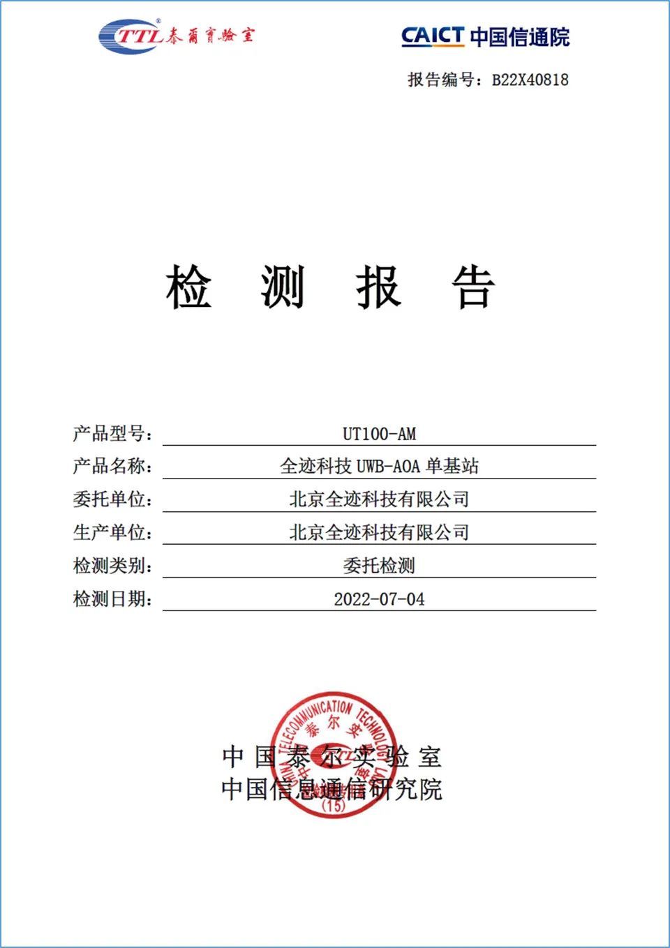 中國(guó)信息通信研究院泰爾實(shí)驗(yàn)室完成全跡UWB-AOA單基站定位解決方案檢測(cè)驗(yàn)證